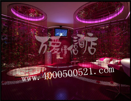 双井店55间主题房,每个房间都是采用完全不同的设计风格,阐述不同的浪漫主题,满足客户对浪漫的无限遐想。灰姑娘的南瓜车、置身薰衣草海洋的紫色浪漫,摩登时尚的原始洞穴、未来世界的科技房、小美人鱼的水下世界,55间造型新颖的爱舍,都是全体万爱人的各方配合之下倾力打造而成。
