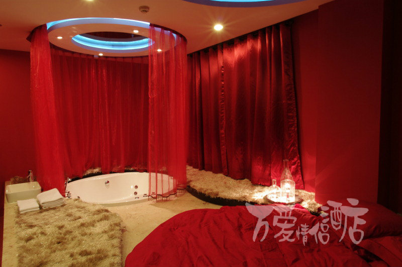 “提前四个月定到了这家店最火爆的‘梦幻’那间,红色的主色调、圆形浴缸、圆形睡床、红色纱帘、绝对梦幻、绝对给力,爱死了。”客户:yfei**