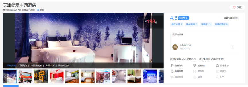 本月我们又迎来了万爱在天津的D六家分店,原天津简爱主题酒店。酒店位于天津北辰区吉贤里,2018年起对外经营。酒店主打创意型主题住宿,推出22间主题客房,但在一年多的经营过程中逐渐陷入困局。单体店在品牌影响力、人员培训管理、系统化运营方面多有欠缺,管理成本转嫁为投资者的人力成本,时间久了力不足心,业绩也无法维持。