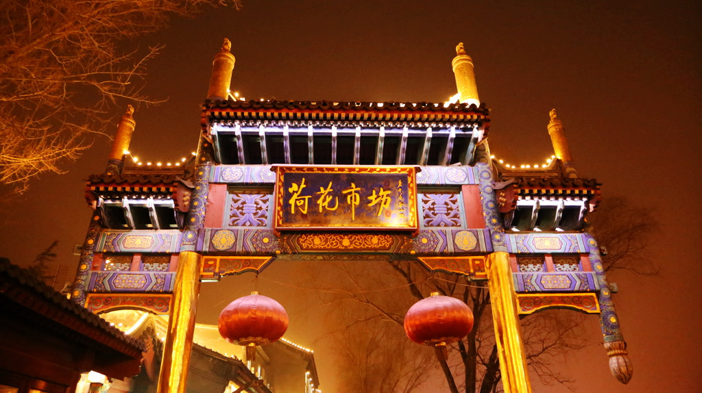 北海公园北门正对的是荷花市场,也就是什刹海,沿路前行,两侧是众多的酒吧西餐厅,夜幕降临会有酒保当街招揽生意,歌手或低声吟唱或声嘶力竭。