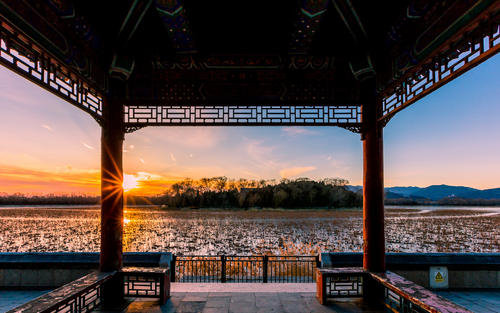 颐和园, 中国 清朝时期皇家园林,前身为清漪园,坐落在北京 西郊,距城区十五公里,占地约二百九十公顷,与圆明园毗邻。它是以昆明 湖、万寿山为基址,以杭州 西湖为蓝本,汲取 江南 园林的设计手法而建成的一座大型山水园林,也是保存最完整的一座皇家行宫御苑,被誉为“皇家园林博物馆”,也是国家重点旅游景点。