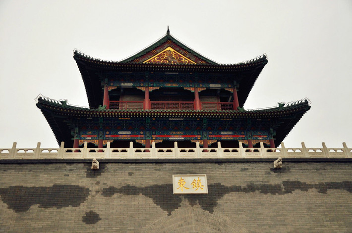 天津卫三宗宝——鼓楼,炮台,铃铛阁之一,城楼四面每一面的匾额都不同,分别是“镇东”,“定南”,“安西”,“拱北”