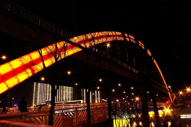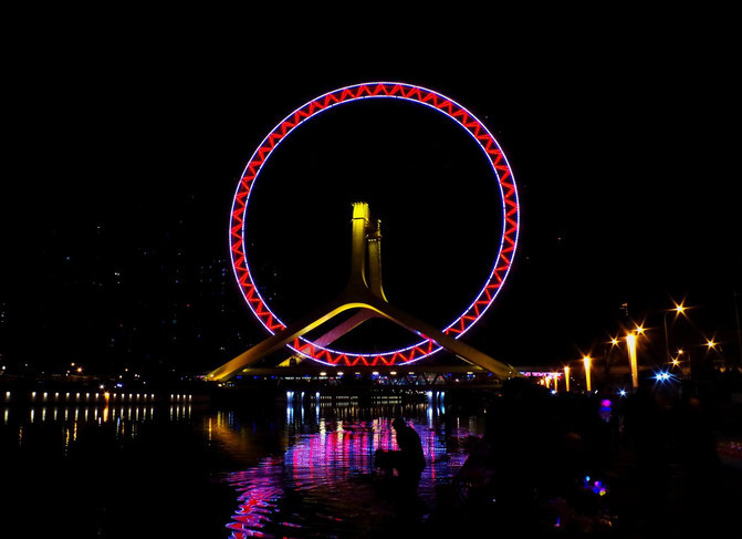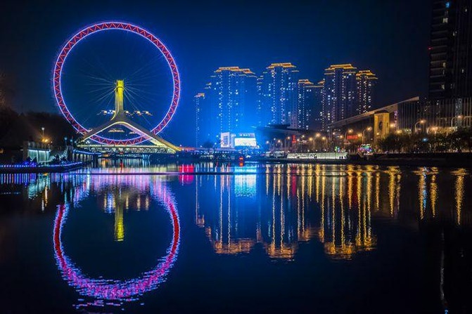 欣赏天津的欧陆风情建筑,还有一项不得不看的,那就是海河上的桥梁。永乐桥上高达120米的“天津之眼”摩天轮,它是世界上唯一的建在桥上摩天轮。 天津之眼以它坚毅的姿态守望着天津,在微风细雨中,在朝阳彩霞里,见证天津市的日新月异,也把幸福挥洒在这座城市。“