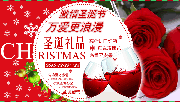有浪漫才激情,给爱人送上惊喜浪漫礼物,圣诞节才更浪漫激情,圣诞节前夕,万爱酒店特别推出点燃激情的浪漫圣诞礼品,赠送给入住酒店的真爱情侣,让热恋中的爱侣在圣诞节享受极致浪漫激情。