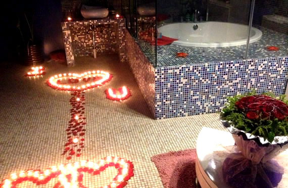 他选择了一间【一生一世】主题房间像她求婚,屋顶是透明的玻璃。屋内浪漫布置,或者心型的蜡烛、或是爱的玫瑰花瓣。水池里、浴缸中、床单上到处有着玫瑰花的淡淡的香气。这一切的浪漫都源自万爱酒店的特色,让每一对情侣都可以感觉到那股永远难忘的温情。