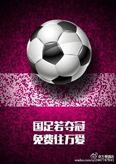 我大国足状态正好,为给国足加油助威,万爱君决定土豪任性一次:国足若夺冠 免费住万爱!!!