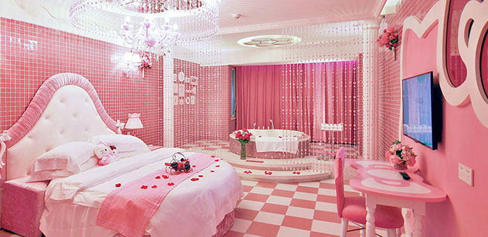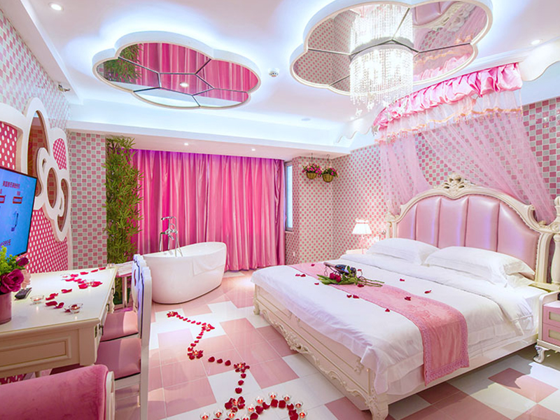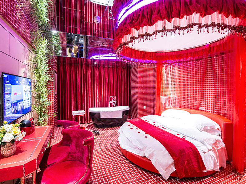 黄粉,圆床,冲浪按摩浴缸,有窗