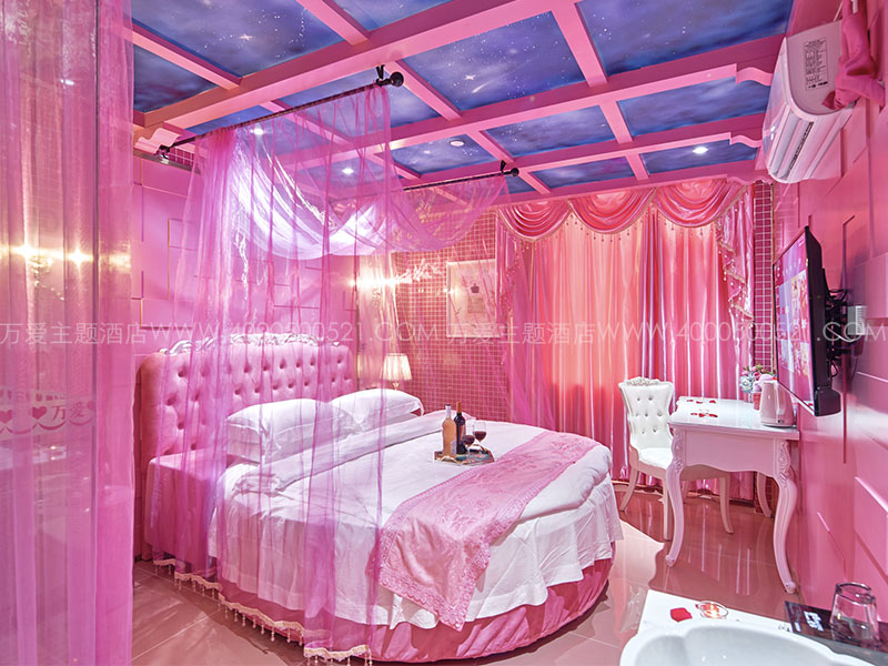 主题设施:粉,圆床,淋浴,有窗,苏式建筑群