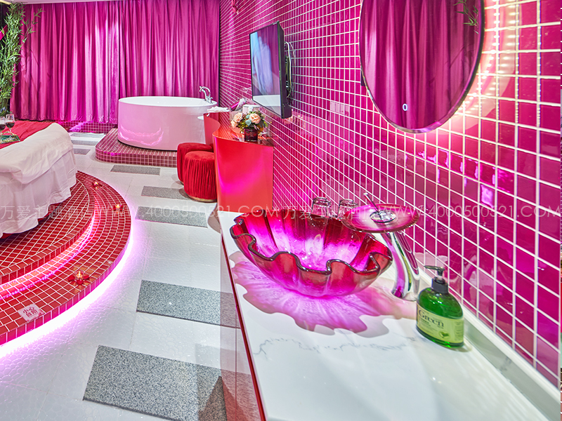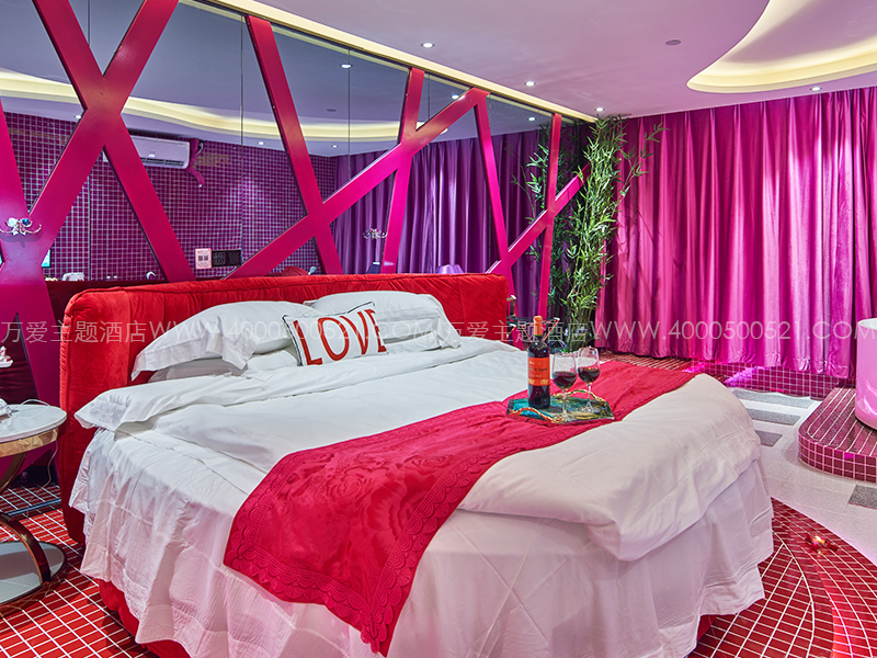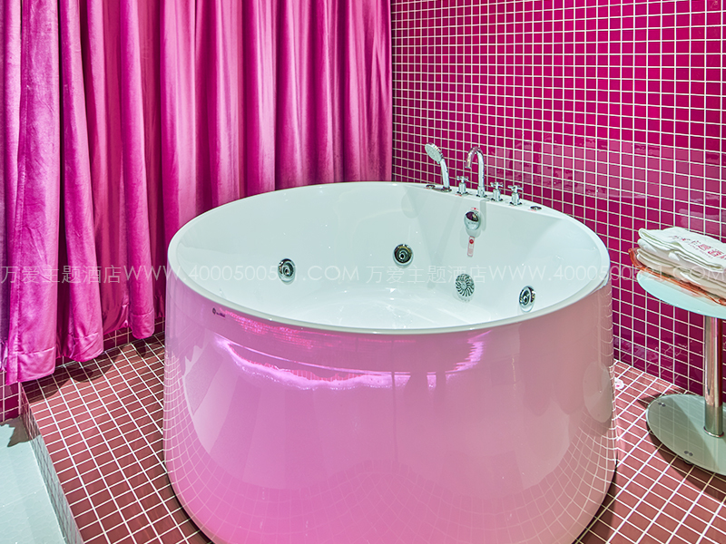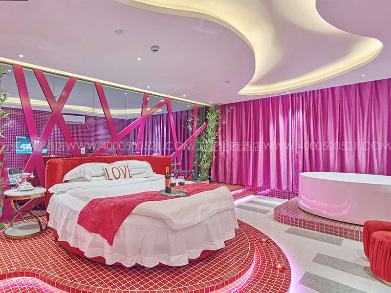 主题设施:红,圆床,冲浪浴缸,有窗,苏式建筑群