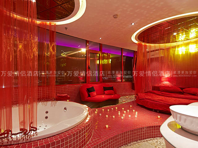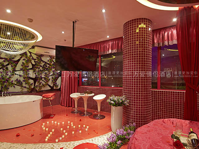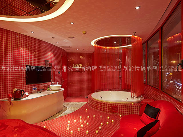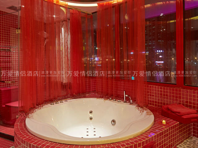 主题设施:珊瑚红、圆床、冲浪浴缸、观海河