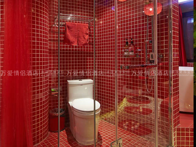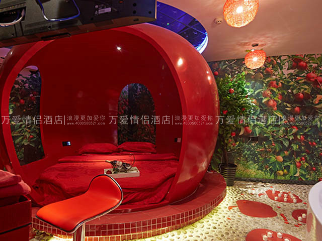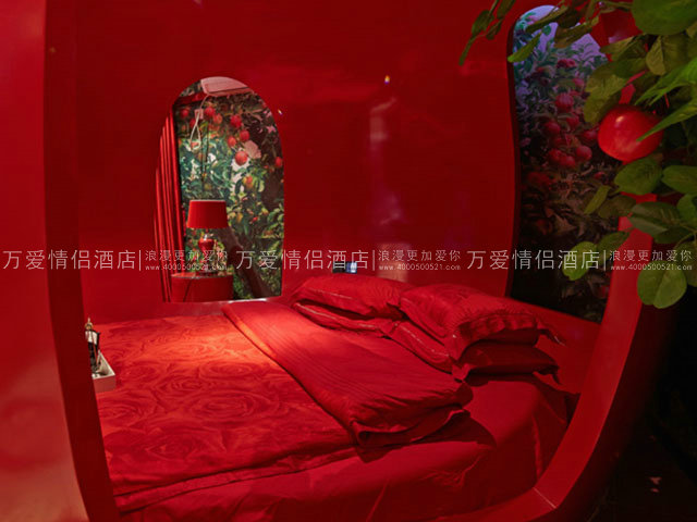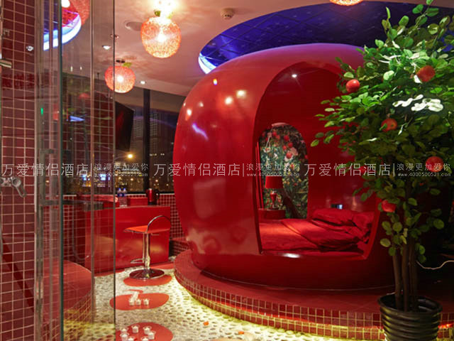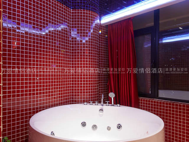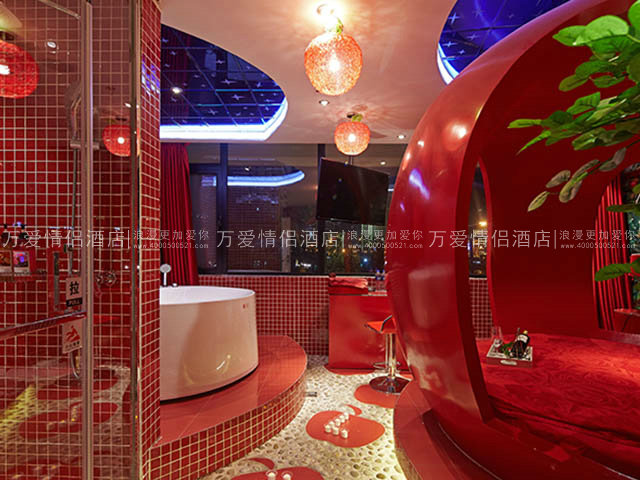 主题设施:激情红、圆水床、冲浪浴缸、观海河