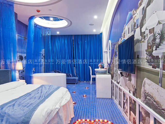 主题设施:海之蓝、冲浪浴缸、圆床、内窗
