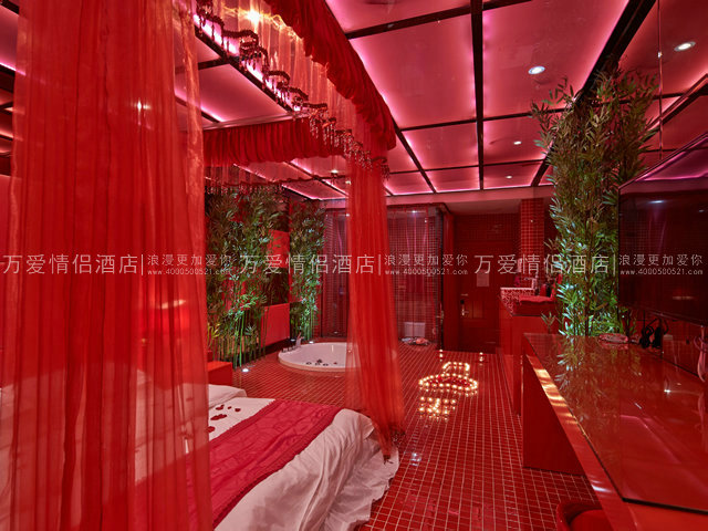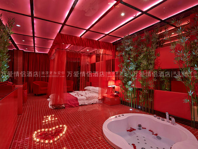 主题设施:激情红、浴缸、方水床、观秦淮河